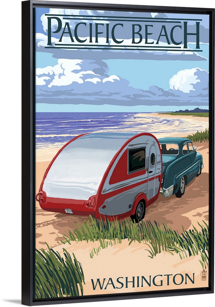 <p>Pacific Beach, Washington, Retro Camper on Beach</p>