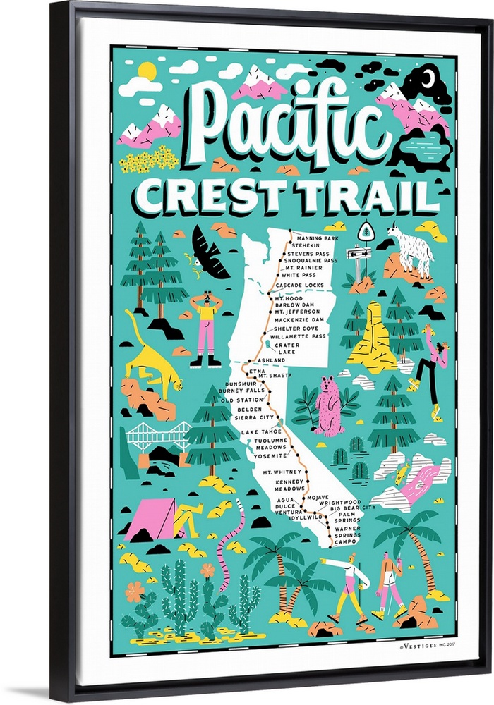 Art Contemporary Art Graphic Art Illustrations Vestiges, Inc. Maps Educational Maps United States California Oregon Hiking