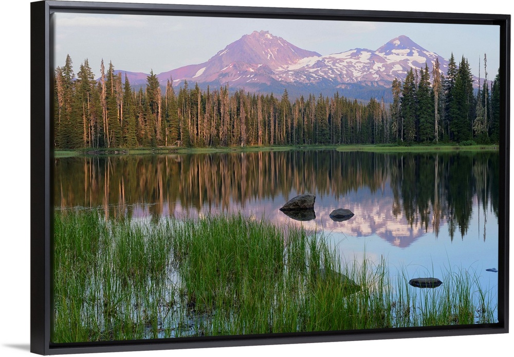 <p>USA, Pacific Northwest, Oregon Cascades, Scott lake with three sisters mountains.</p>