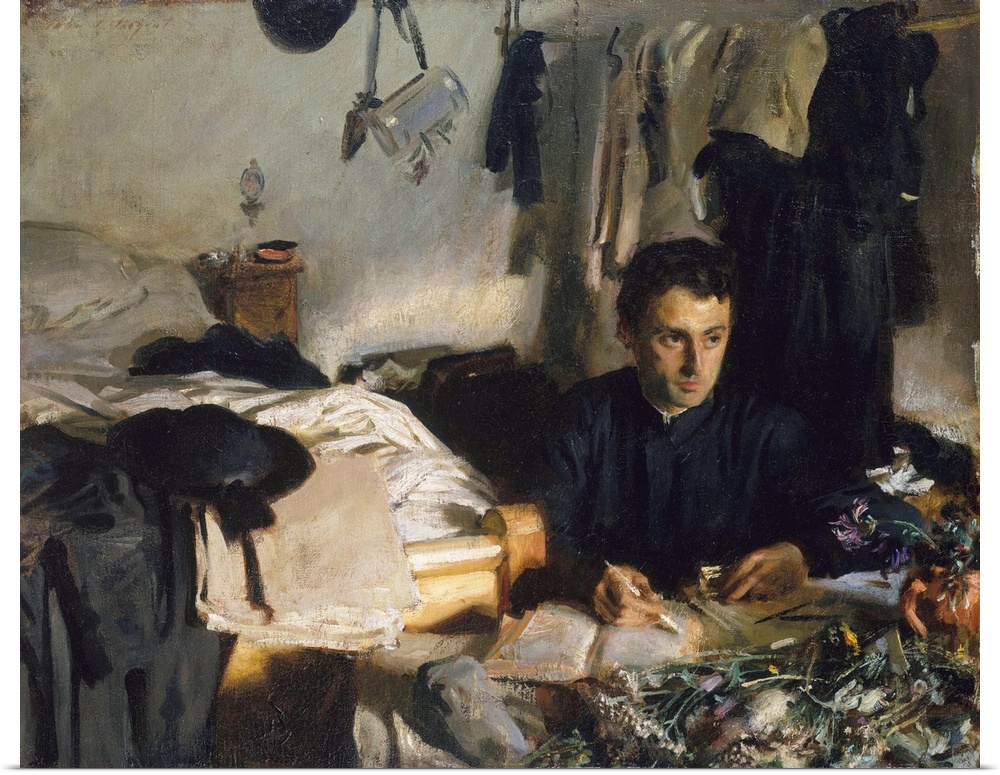 <p>Sargent's sister described Padre Sebastiano, whom the artist met while on holiday at Giomein, a village in the Italian Alps, as a botanizing priest. Sargent captured the cleric's thoughtful demeanor and conveyed his interest in nature by showing him making notes about the flowers that cover the table in his cluttered bedroom. The Metropolitan purchased this painting directly from the artist in 1910. It represents a noteworthy departure from Sargent's formal commissioned portraits.</p>