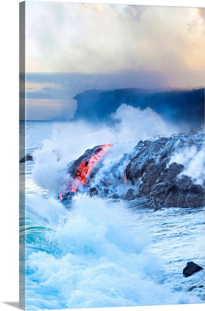 <p>Pahoehoe lava flowing from Kilauea has reached the Pacific ocean near Kalapana; Island of Hawaii, Hawaii, United States of America</p>