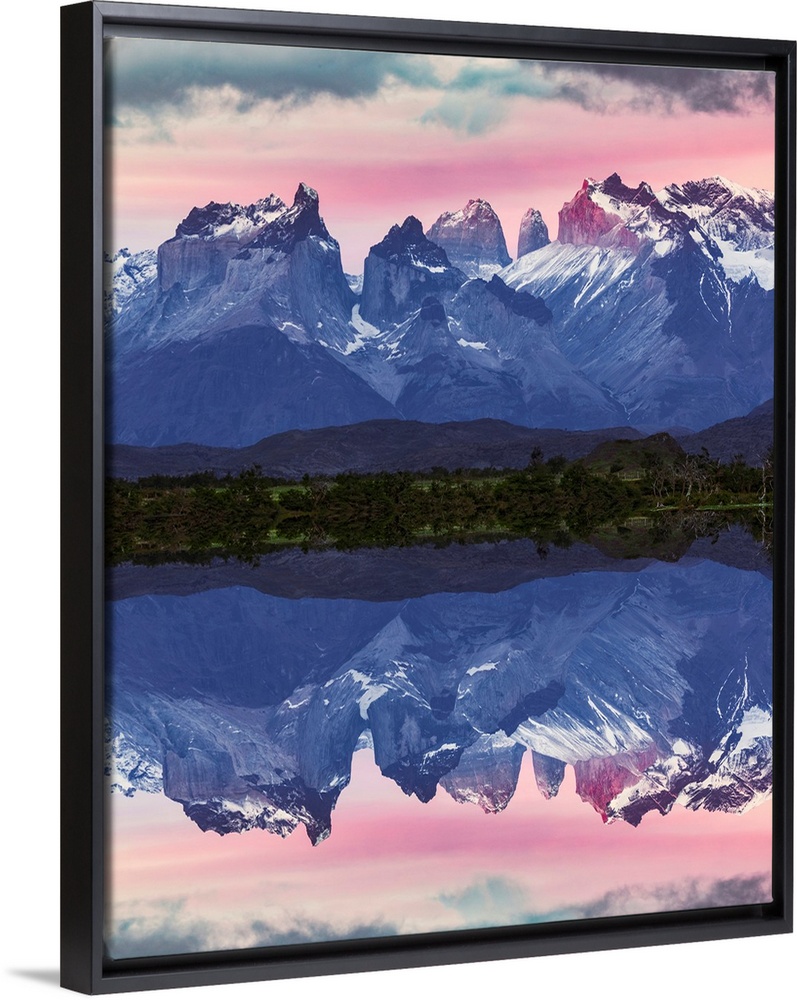 <p>Paine Massif reflection at sunset, Torres del Paine National Park, Chile, South America, Patagonia.</p>