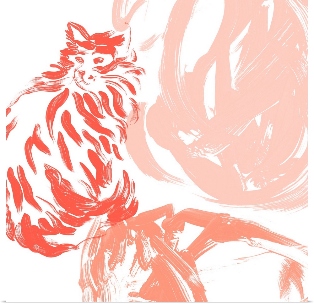 Art Decorative Art Painting Pink Wall Art June Erica Vess Wildlife Cat