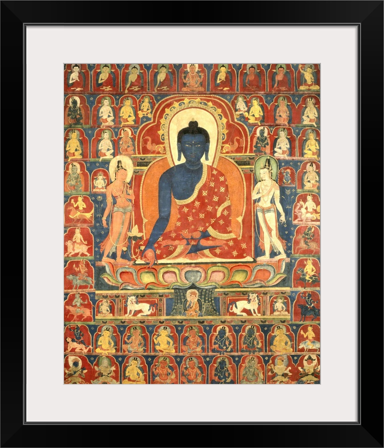 <p>Painted Banner, Thangka with the Medicine Buddha, Bhaishajyaguru, 14th century, pigment on cloth.</p>
