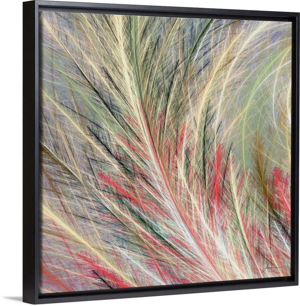 <p>Abstract fronds arc elegantly across the canvas.</p>