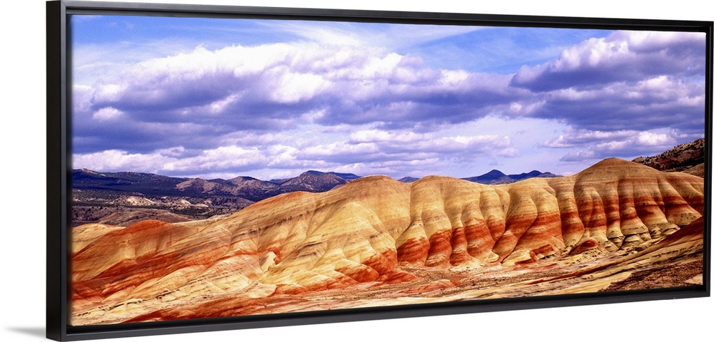 <p>Large white clouds over the Painted Hills in Oregon.</p>