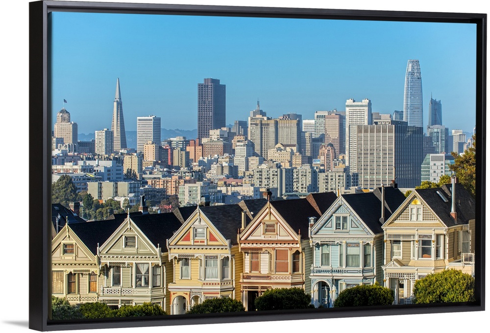 <p>Photograph of the Painted Ladies in downtown San Francisco with tall buildings in the background.</p>
