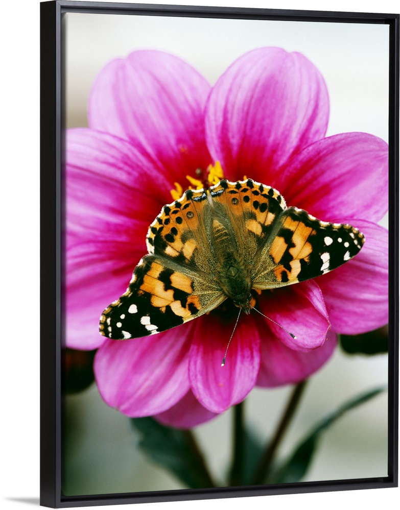 <p>This is a close up, vertical photograph of an insect resting on a flower in this decorative art for the home or office.</p>