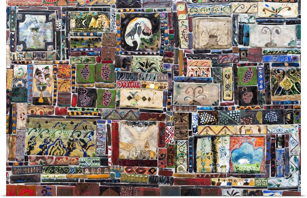 <p>Painted tiles on the Clock Tower of the Gabriadze puppet theatre, Tbilisi, Georgia, Caucasus</p>