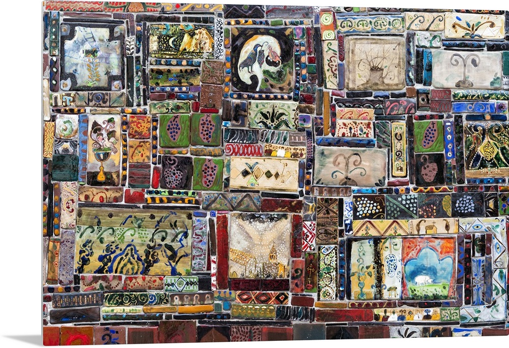 <p>Painted tiles on the Clock Tower of the Gabriadze puppet theatre, Tbilisi, Georgia, Caucasus</p>