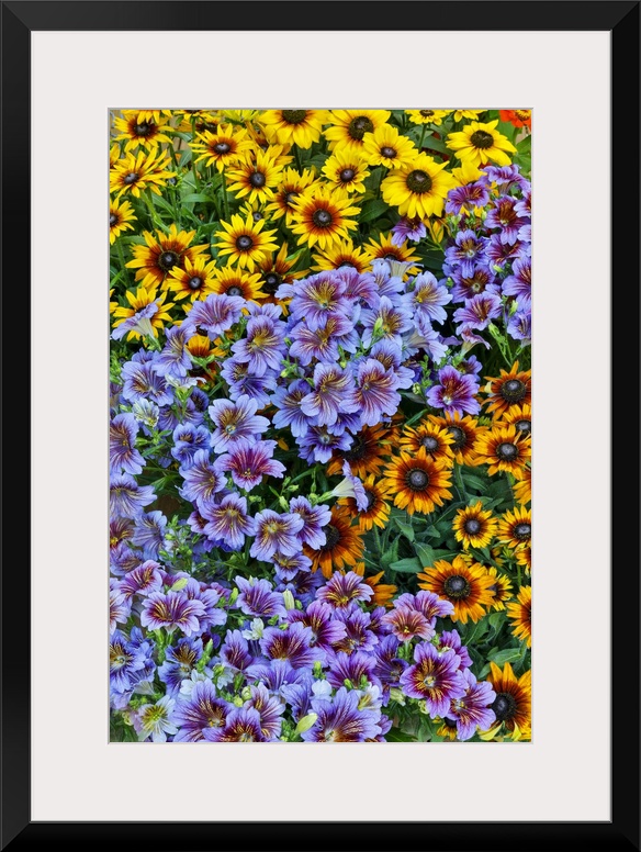 <p>Painted tongue and hirta daisies in tight grouping</p>