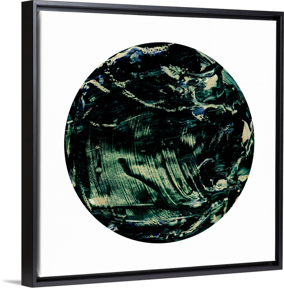 <p>A contemporary abstract painting using dark green in a circle against a white background.</p>