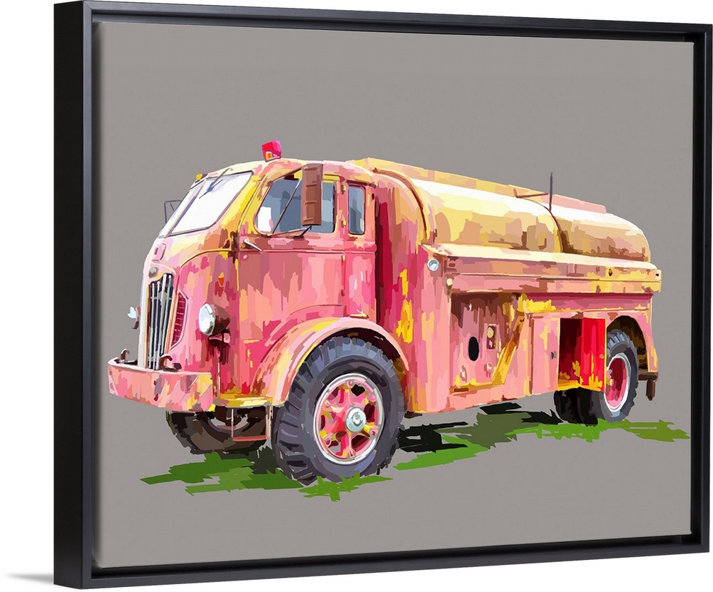 <p>Artwork of a vintage firetruck on a neutral grey background.</p>
