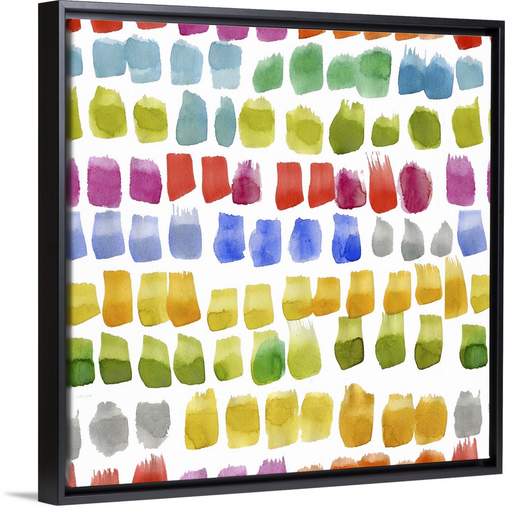 <p>Square decorative artwork of multi-colored brush spots in rows on a white background.</p>
