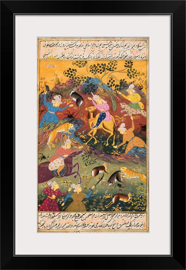 <p>Painting From 17Th Century Persian Manuscript Hunters Mounted And On Foot Killing Deer And Tiger.</p>