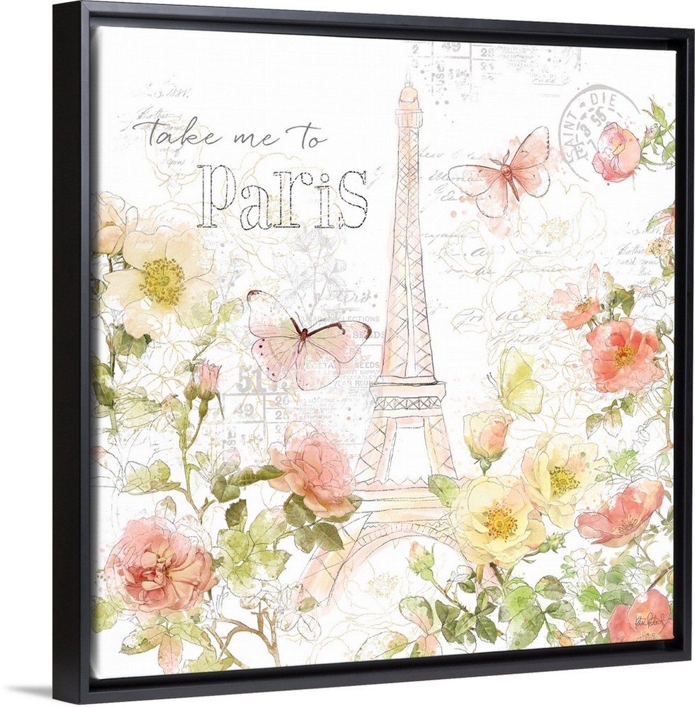 Art Decorative Art Florals Rose Graphic Art Katie Pertiet Paris Eiffel Tower Butterfly