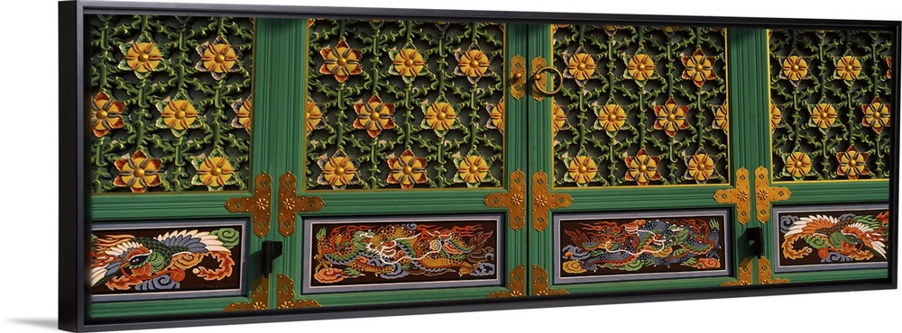 <p>Paintings on the door of a Buddhist temple, Kayasan Mountains, Haeinsa Temple, Gyeongsang Province, South Korea</p>