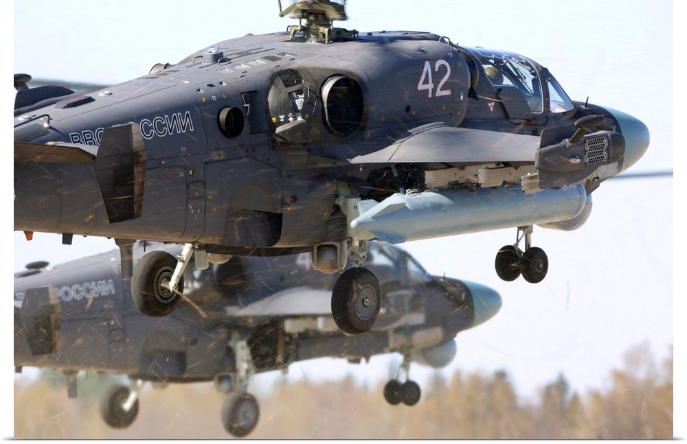 <p>Pair of Ka-52 Alligator attack helicopters of the Russian Air Force.</p>