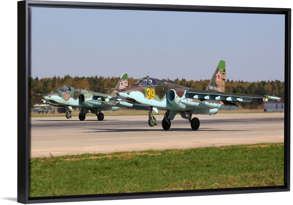 <p>Pair of Su-25 attack aircraft of the Russian Air Force landing.</p>