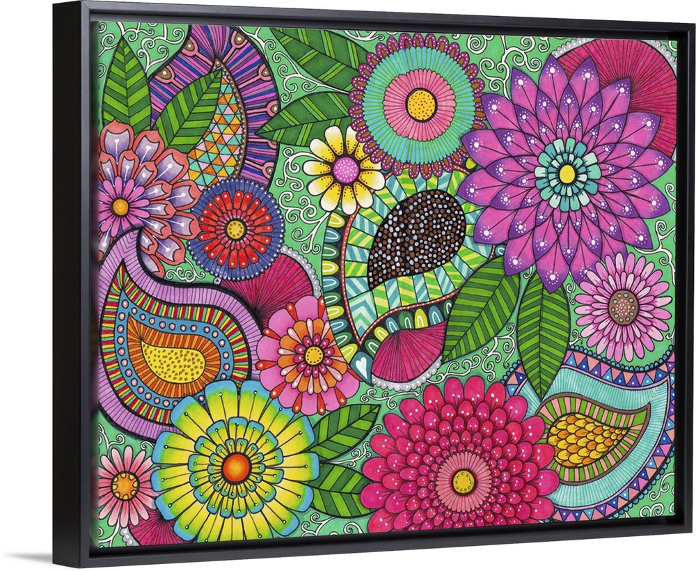 <p>Contemporary abstract artwork of flowers using bright vibrant colors and patterns.</p>