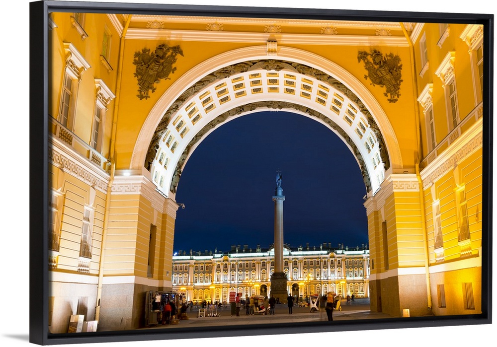 <p>View of Palace Square, Alexander Column and the Winter Palace through the Triumphal Arch of the General Staff Building, St. Petersburg, Russia</p>