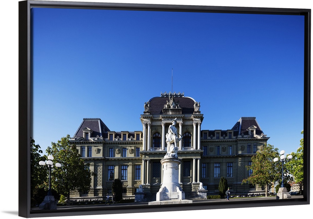 <p>Palais de Justice and statue of William Tell, Lausanne, Vaud, Switzerland, Europe</p>
