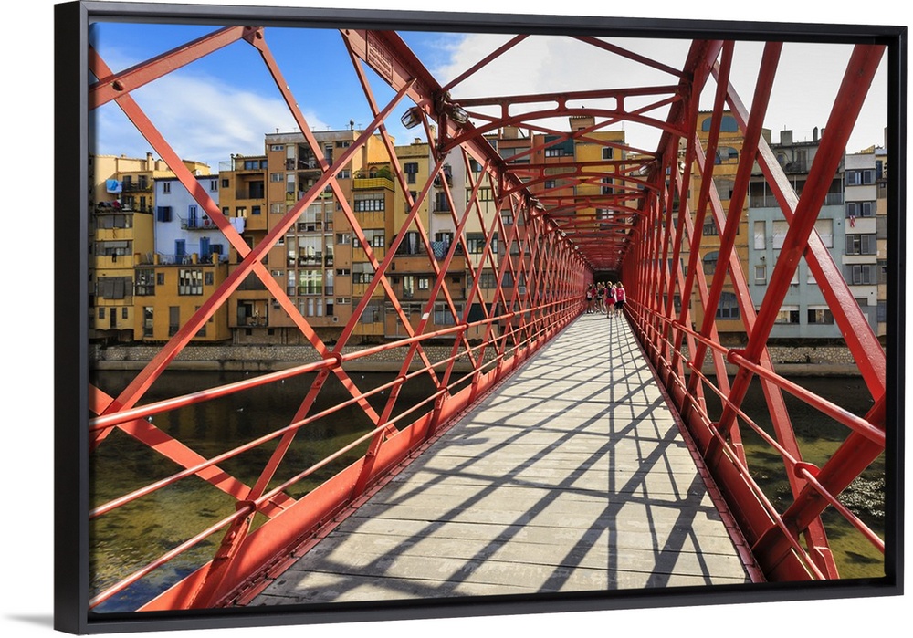 <p>Palanques Vermelles bridge, red bridge across Onyar River, by Gustav Eiffel, City of Girona, Girona Province, Catalonia, Spain, Europe</p>