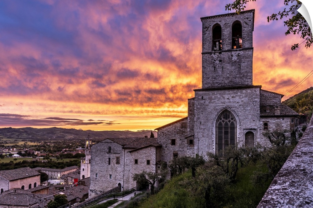 <p>Palazzo dei Consoli (Palace of the Consuls) and Cathedral at sunset, Gubbio, Umbria, Italy</p>