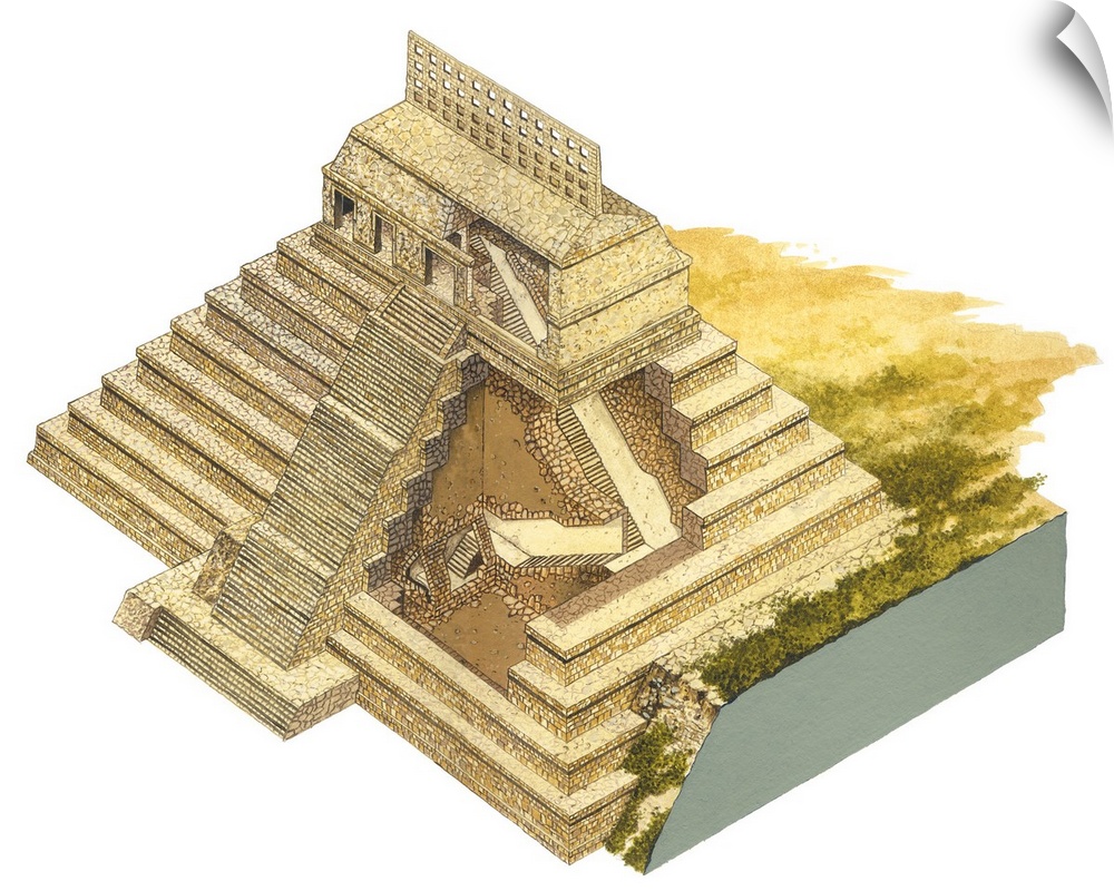 Architecture Temple Pyramids Art Fernando Aznar Cenamor Decorative Art Ancient Illustrations Painting Mexico Watercolor