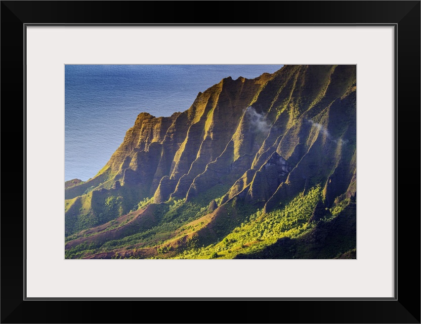 <p>Pali sea cliffs at Kalalau lookout, Napali coast, Kokee State Park, Kauai Island, Hawaii, United States of America, North America</p>
