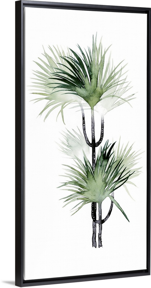 <p>Watercolor artwork of a palm tree with broad green fronds.</p>