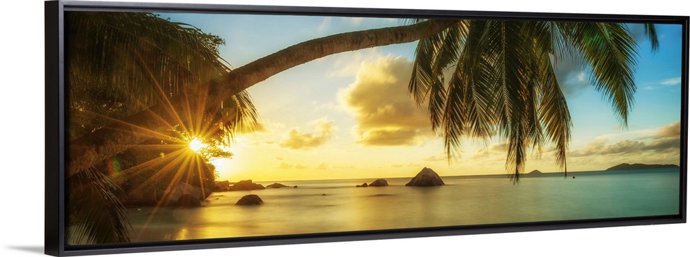 <p>Palm Tree At Sunset, Anse Lazio Beach, Praslin, Seychelles</p>