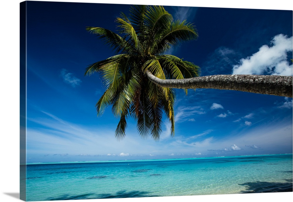 <p>Palm tree bending over the beach, Bora Bora, Society Islands, French Polynesia</p>