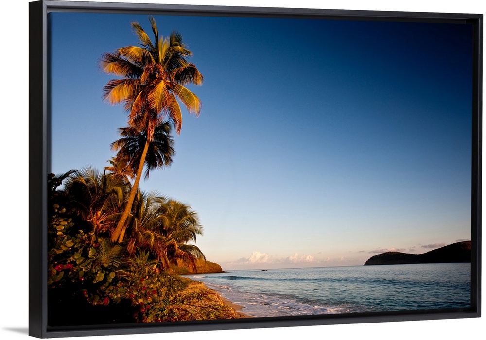 <p>Palm tree on beach at sunset, Culebra Island, Puerto Rico</p>