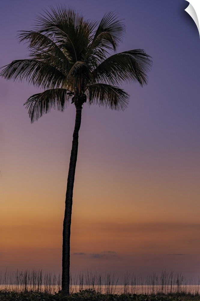 <p>Palm tree silhouetted against the sunrise on Sanibel Island, Florida, USA.</p>