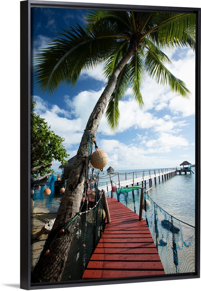 <p>Palm Trees and dock, Bora Bora, Society Islands, French Polynesia</p>