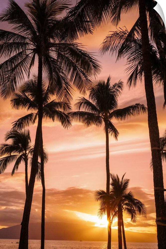 <p>Palm trees at sunset; Maui, Hawaii, united states of America.</p>