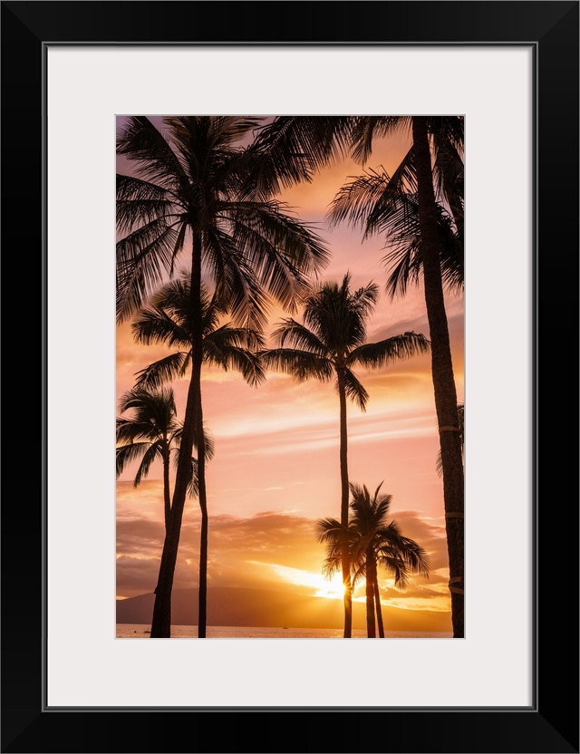 <p>Palm trees at sunset; Maui, Hawaii, united states of America.</p>