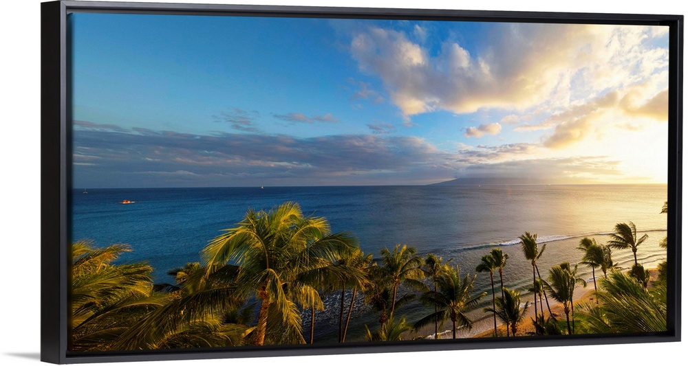 <p>Palm trees on the beach at dusk, Kaanapali, Maui, Hawaii, USA.</p>