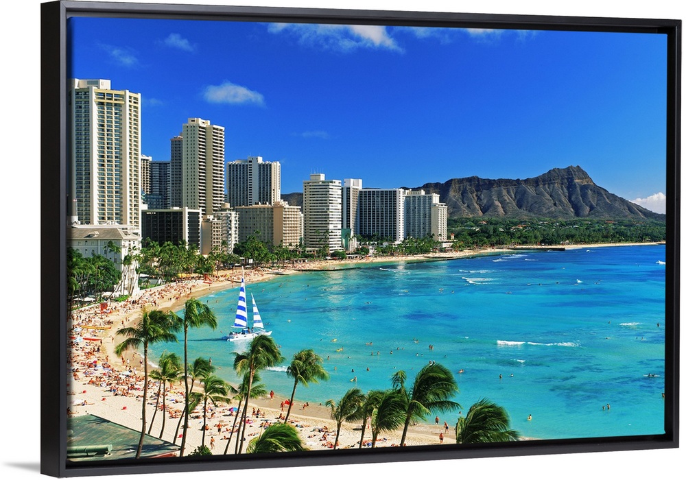 <p>Palm trees on the beach, Diamond Head, Waikiki Beach, Oahu, Honolulu, Hawaii, USA</p>