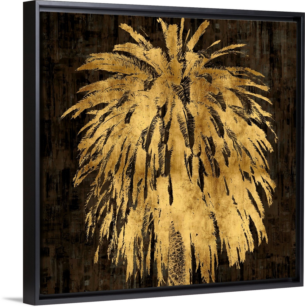 <p>Gold palm tree on a black and brown textured background.</p>