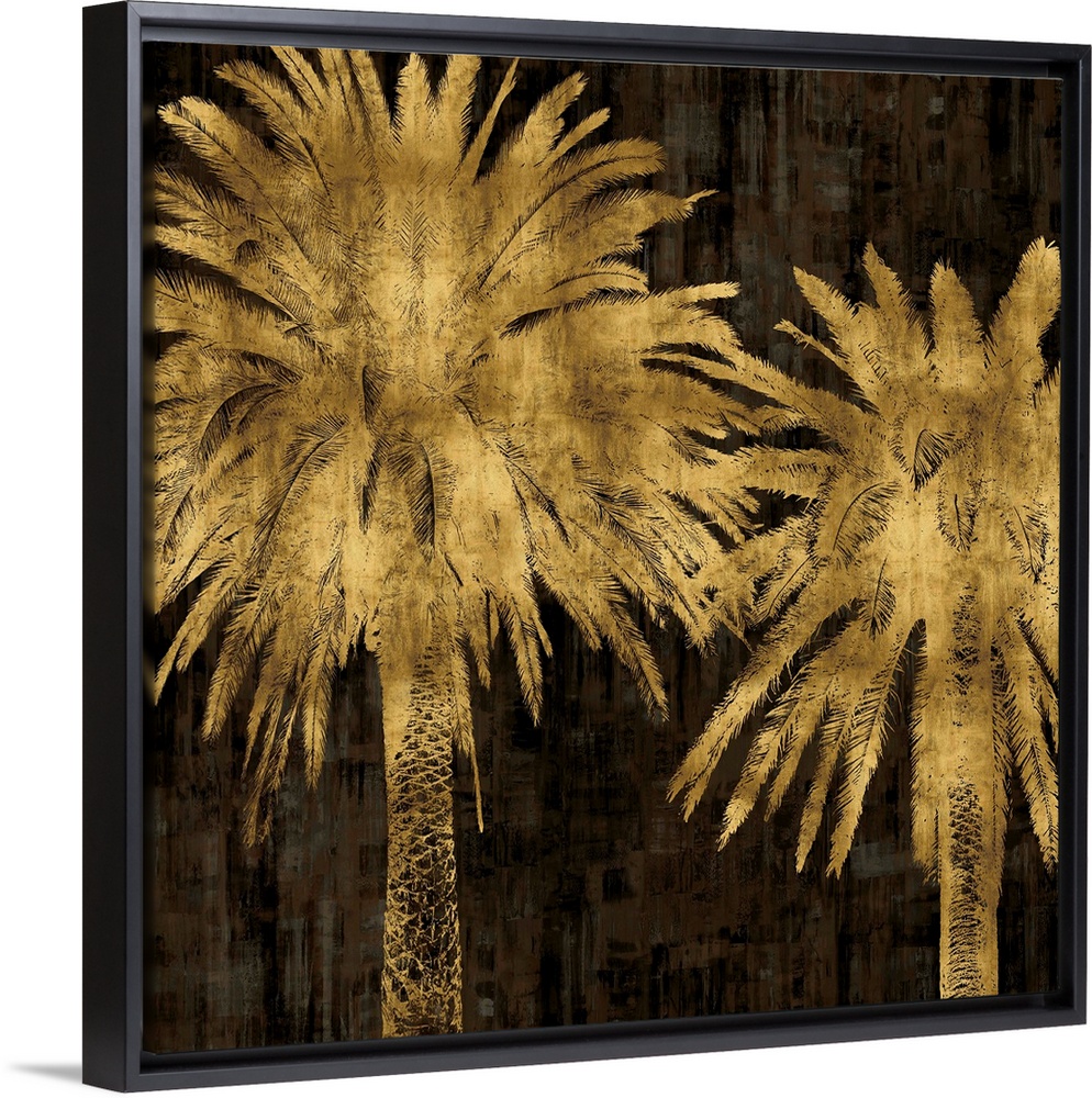 <p>Two gold palm trees on a black and brown textured background.</p>