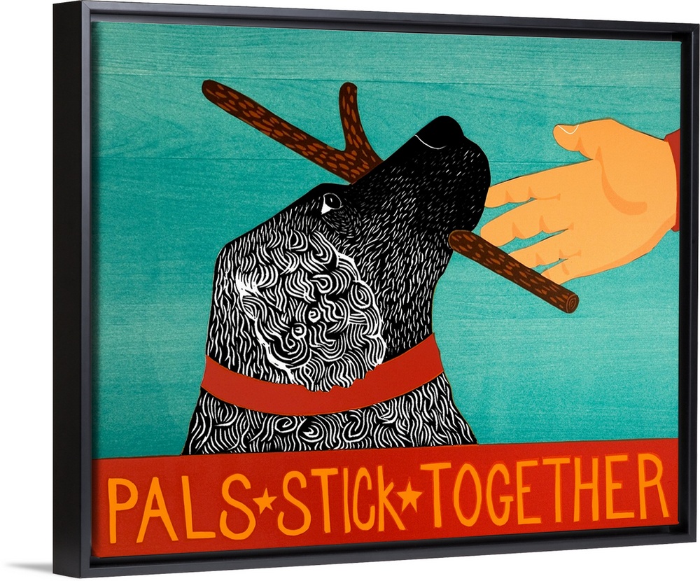 <p>Illustration of a black dog with a stick in its mouth and its owners hand next to it with the phrase "Pals Stick Togeher" written on the bottom.</p>
