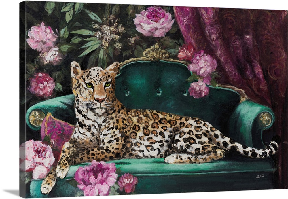 Art Glam Contemporary Art Florals Green Wall Art Painting Pink Wall Art Julia Purinton Wildlife Leopard