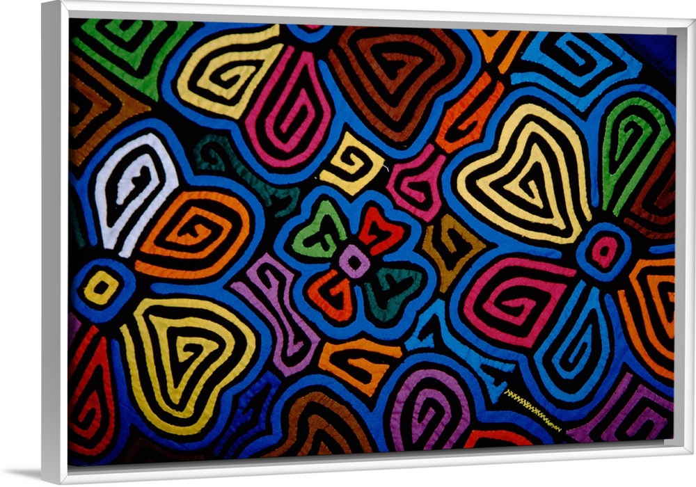 <p>Central America, Panama, Panama Province, Panama City, Handicraft Market. Kuna Indian mola. Colorful hand stitched mola.</p>