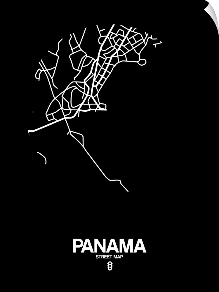 <p>Minimalist art map of the city streets of Panama in black and white.</p>