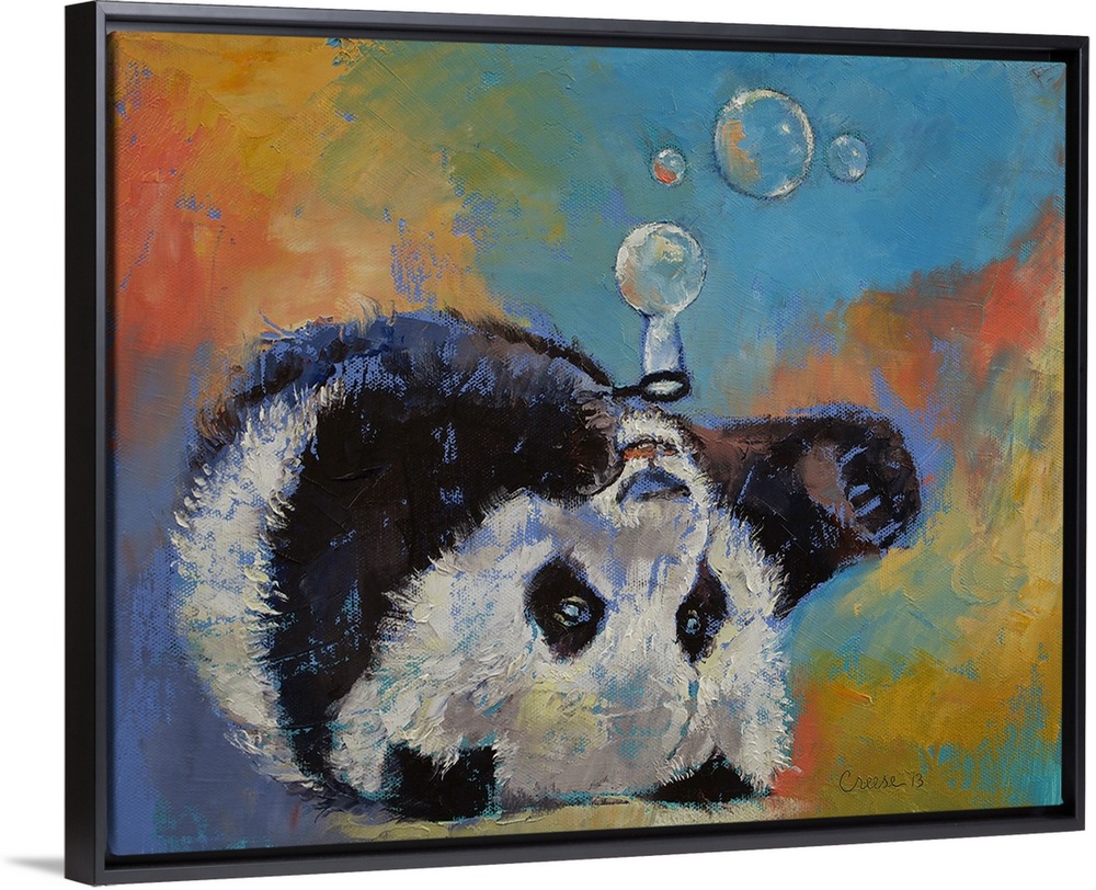 <p>A contemporary painting of a panda bear blowing bubbles.</p>