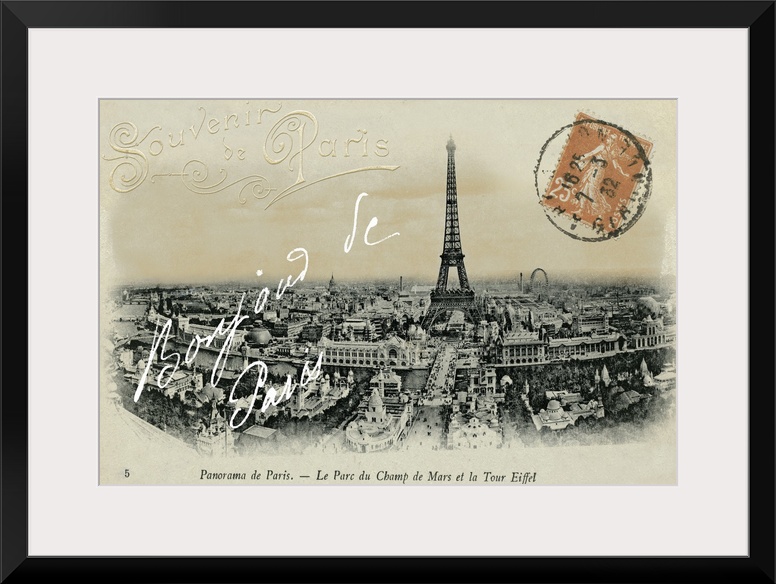 <p>Vintage souvenir postcard from France of the Eiffel Tower and surrounding Paris city.</p>