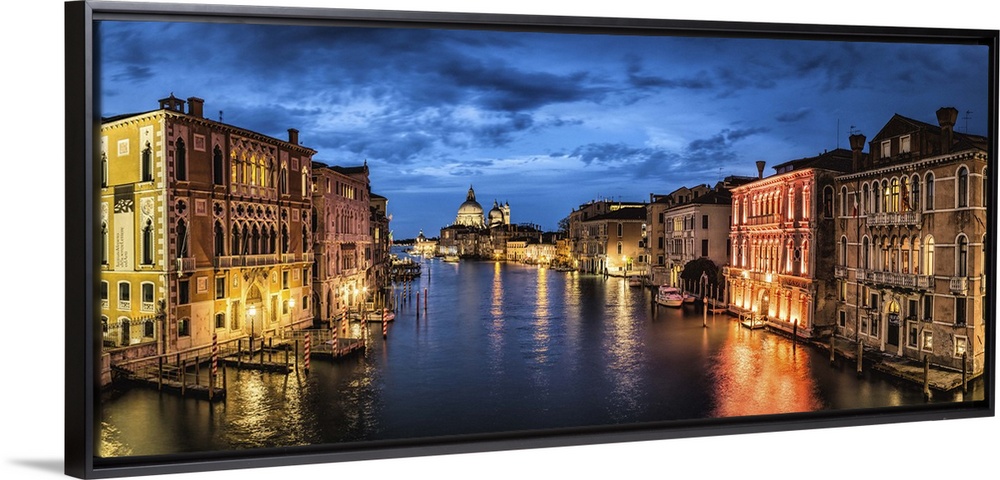 <p>Panorama from the Academia Bridge after dark in Venice, Italy.</p>