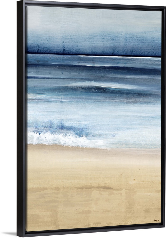 <p>Contemporary painting of a peaceful beach scene, where the ocean and sand meet.</p>
